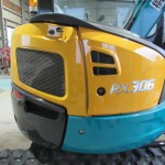 (整備点検報告)新品バケットピン交換、i椅子新品交換中、アームシリンダーO/Hバケット、アーム、ブーム取付け周りブッシュ、シム調整整備、走行モーター減速機ギアオイル交換、エンジンオイル交換、オイルフィルター交換、燃料フィルター交換、エアークリーナー交換、ベルト類確認、冷却水確認、エンジン音・匂い・かかり具合良好、旋回モーター横ガタ・縦ガタ確認、各シリンダー確認、その他オイル漏れ・燃料漏れ確認、作動油フィルター良好、グロー(余熱)確認済、4WAYマルチレバー作動確認、バッテリー電圧、電流、比重、チャージ確認、セルモーター回転速度確認、モニター・ライト・ホーン等電気系確認、クレーン作動確認、干渉防止確認、オートアイドリング確認、上部ローラー・下部ローラー・フロントアイドラー、ゴム履帯回り良好、油圧ポンプ音・作業機スピード基準値内合格、オーバーヒート負荷検査合格、総合検査合格
