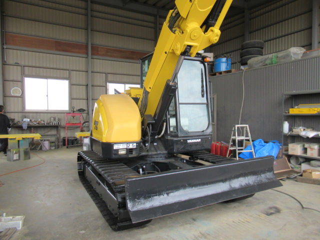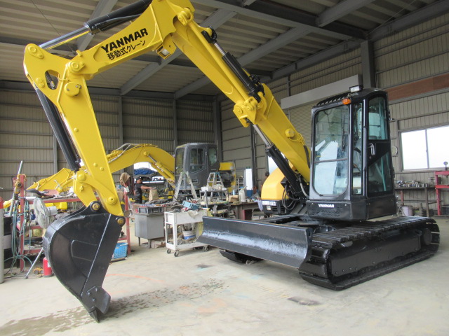 (分解・整備・点検報告)バケット、アーム、ブーム取付け周りピン、ブッシュ、シム調整整備、走行モーター減速機ギアオイル交換、エンジンオイル交換、オイルフィルター交換、燃料フィルター交換、エアークリーナー交換、ベルト類確認、冷却水確認、エンジン音・匂い・かかり具合良好、旋回モーター横ガタ・縦ガタ確認、各シリンダー確認、その他オイル漏れ・燃料漏れ確認、作動油フィルター良好、グロー(余熱)確認済、4WAYマルチレバー作動確認、バッテリー電圧、チャージ確認、セルモーター回転速度確認、モニター・ライト・ホーン等電気系確認、クレーン作動確認、上部ローラー・下部ローラー・フロントアイドラー、ゴムパット及び鉄シュー・履帯回り良好、油圧ポンプ音・作業機スピード基準値合格、オーバーヒート負荷検査合格、総合検査合格