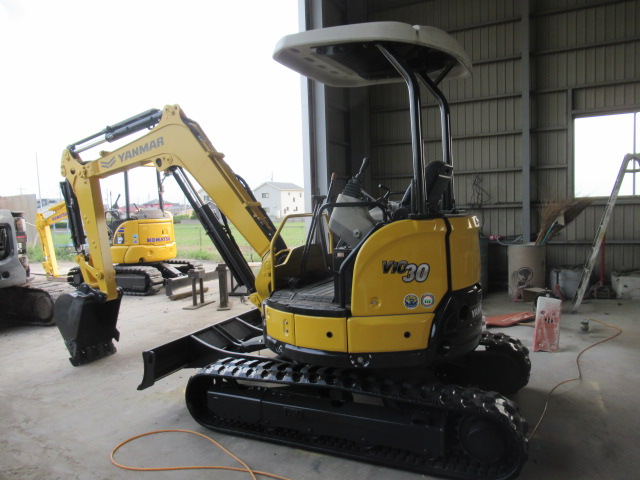 (分解・整備・点検報告)バケット、アーム、ブーム取付け周りピン、ブッシュ、シム調整整備、走行モーター減速機ギアオイル交換、エンジンオイル交換、オイルフィルター交換、燃料フィルター交換、エアークリーナー交換、ベルト類確認、冷却水確認、エンジン音・匂い・かかり具合良好、旋回モーター横ガタ・縦ガタ確認、各シリンダー確認、その他オイル漏れ・燃料漏れ確認、作動油フィルター良好、グロー(余熱)確認済、4WAYマルチレバー作動確認、バッテリー電圧、チャージ確認、セルモーター回転速度確認、モニター・ライト・ホーン等電気系確認、オートアイドリング確認、上部ローラー・下部ローラー・フロントアイドラー、ゴム履帯回り良好、油圧ポンプ音・作業機スピード基準値合格、オーバーヒート負荷検査合格、総合検査合格