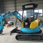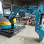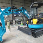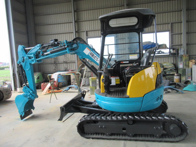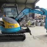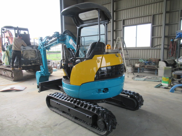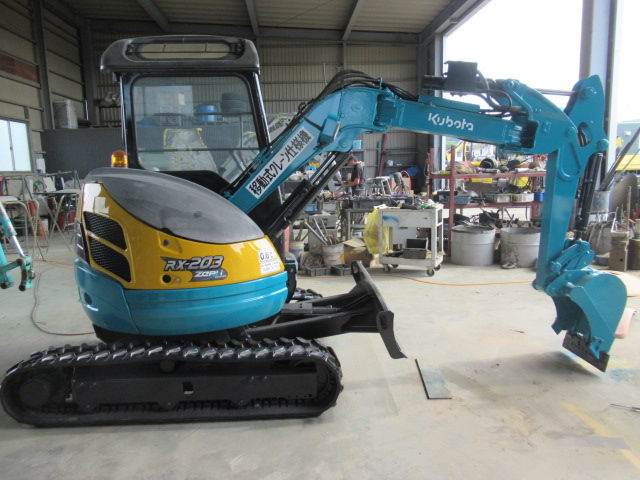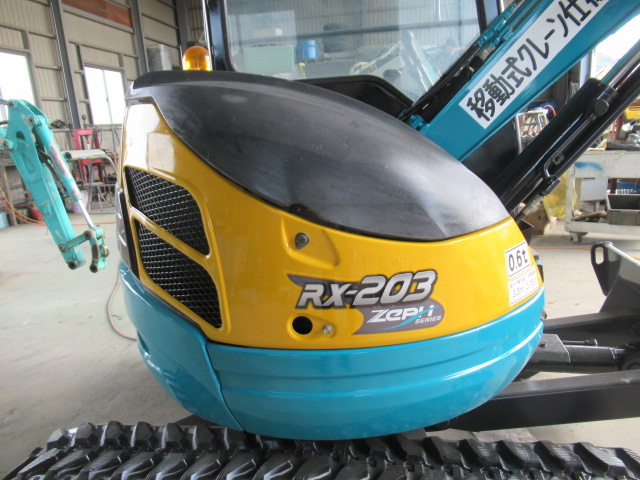 (分解・整備・点検報告)ゴムクローラー新品、平刃新品、バケット、アーム、ブーム取付け周りピン、ブッシュ、シム調整整備、走行モーター減速機ギアオイル交換、エンジンオイル交換、オイルフィルター交換、燃料フィルター交換、エアークリーナー交換、ベルト類確認、冷却水確認、エンジン音・匂い・かかり具合良好、旋回モーター横ガタ・縦ガタ確認、各シリンダー確認、その他オイル漏れ・燃料漏れ確認、作動油フィルター良好、グロー(余熱)確認済、4WAYマルチレバー作動確認、バッテリー電圧、チャージ確認、セルモーター回転速度確認、モニター・ライト・ホーン等電気系確認、クレーン作動確認、干渉防止確認、フロントアイドラー、ゴム履帯回り良好、油圧ポンプ音・作業機スピード基準値合格、オーバーヒート負荷検査合格、総合検査合格