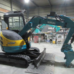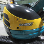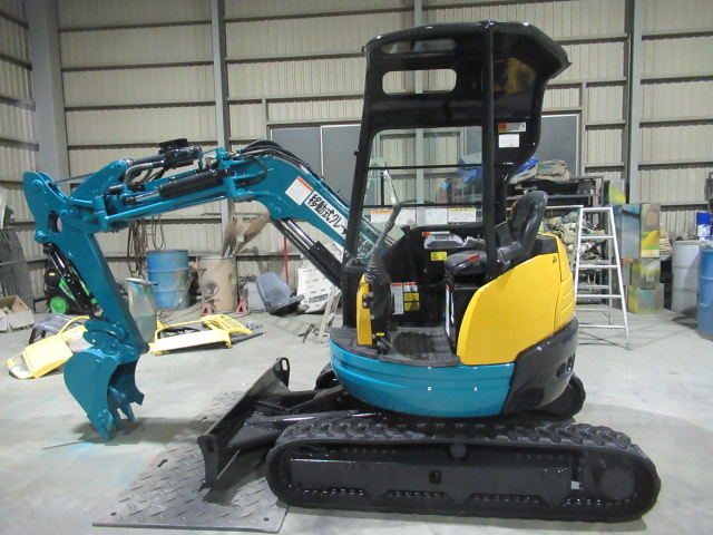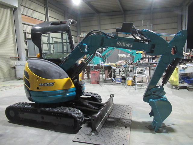 (分解・整備・点検報告)バケット、アーム、ブーム取付け周りピン、ブッシュ、シム調整整備、走行モーター減速機ギアオイル交換、エンジンオイル交換、オイルフィルター交換、燃料フィルター交換、エアークリーナー交換、ベルト類確認、冷却水確認、エンジン音・匂い・かかり具合良好、旋回モーター横ガタ・縦ガタ確認、各シリンダー確認、その他オイル漏れ・燃料漏れ確認、作動油フィルター良好、グロー(余熱)確認済、4WAYマルチレバー作動確認、バッテリー電圧、チャージ確認、セルモーター回転速度確認、モニター・ライト・ホーン等電気系確認、クレーン作動確認、干渉防止確認、上部ローラー・下部ローラー・フロントアイドラー、ゴム履帯回り良好、油圧ポンプ音・作業機スピード基準値合格、オーバーヒート負荷検査合格、総合検査合格