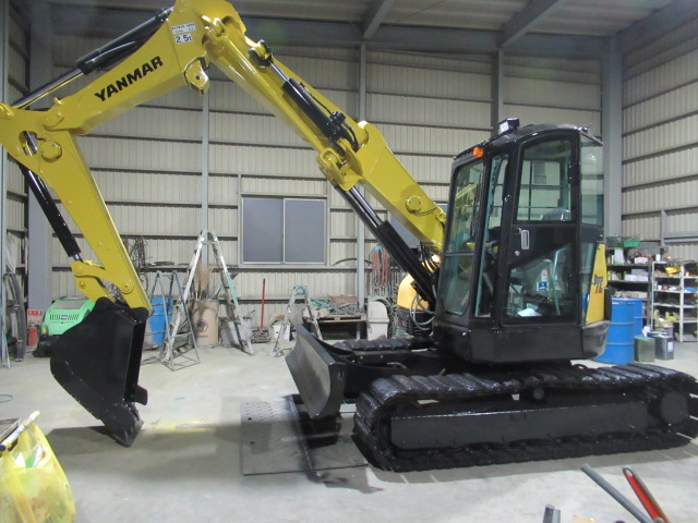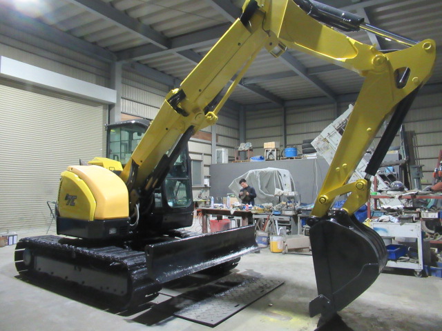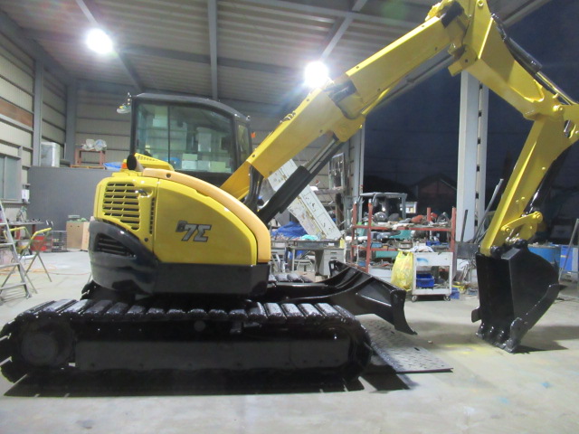 (分解・整備・点検報告)バケット、アーム、ブーム取付け周りピン、ブッシュ、シム調整整備、走行モーター減速機ギアオイル交換、エンジンオイル交換、オイルフィルター交換、燃料フィルター交換、エアークリーナー交換、ベルト類確認、冷却水確認、エンジン音・匂い・かかり具合良好、旋回モーター横ガタ・縦ガタ確認、各シリンダー確認、その他オイル漏れ・燃料漏れ確認、作動油フィルター良好、グロー(余熱)確認済、4WAYマルチレバー作動確認、バッテリー電圧、チャージ確認、セルモーター回転速度確認、モニター・ライト・ホーン等電気系確認、クレーン作動確認、上部ローラー・下部ローラー・フロントアイドラー、ゴムパット及び鉄シュー・履帯回り良好、油圧ポンプ音・作業機スピード基準値合格、オーバーヒート負荷検査合格、総合検査合格