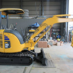(分解・整備・点検報告)バケット、アーム、ブーム取付け周りピン、ブッシュ、シム調整整備、走行モーター減速機ギアオイル交換、エンジンオイル交換、オイルフィルター交換、燃料フィルター交換、エアークリーナー交換、ベルト類確認、冷却水確認、エンジン音・匂い・かかり具合良好、旋回モーター横ガタ・縦ガタ確認、各シリンダー確認、その他オイル漏れ・燃料漏れ確認、作動油フィルター良好、グロー(余熱)確認済、2WAYマルチレバー作動確認、バッテリー電圧、チャージ確認、セルモーター回転速度確認、モニター・ライト・ホーン等電気系確認、上部ローラー・下部ローラー・フロントアイドラー、ゴム履帯回り良好、油圧ポンプ音・作業機スピード基準値合格、オーバーヒート負荷検査合格、総合検査合格