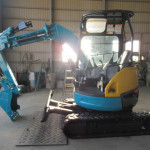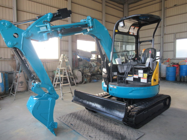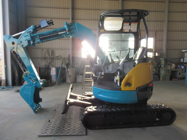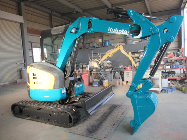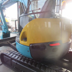(分解・整備・点検報告)バケット、アーム、ブーム取付け周りピン、ブッシュ、シム調整整備、走行モーター減速機ギアオイル交換、エンジンオイル交換、オイルフィルター交換、燃料フィルター交換、エアークリーナー交換、ベルト類確認、冷却水確認、エンジン音・匂い・かかり具合良好、旋回モーター横ガタ・縦ガタ確認、各シリンダー確認、その他オイル漏れ・燃料漏れ確認、作動油フィルター良好、グロー(余熱)確認済、4WAYマルチレバー作動確認、バッテリー電圧、チャージ確認、セルモーター回転速度確認、モニター・ライト・ホーン等電気系確認、クレーン作動確認、干渉防止確認、オートアイドリング確認、上部ローラー・下部ローラー・フロントアイドラー、ゴム履帯回り良好、油圧ポンプ音・作業機スピード基準値合格、オーバーヒート負荷検査合格、総合検査合格