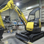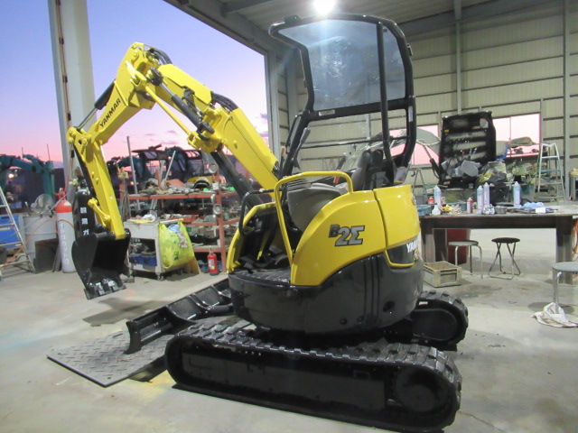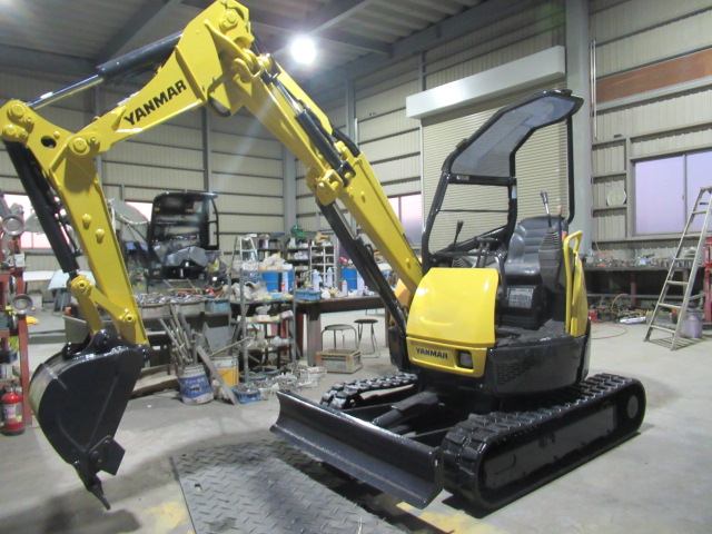 (分解・整備・点検報告)バケット、アーム、ブーム取付け周りピン、ブッシュ、シム調整整備、走行モーター減速機ギアオイル交換、エンジンオイル交換、オイルフィルター交換、燃料フィルター交換、エアークリーナー交換、ベルト類確認、冷却水確認、エンジン音・匂い・かかり具合良好、旋回モーター横ガタ・縦ガタ確認、各シリンダー確認、その他オイル漏れ・燃料漏れ確認、作動油フィルター良好、グロー(余熱)確認済、4WAYマルチレバー作動確認、バッテリー電圧、チャージ確認、セルモーター回転速度確認、モニター・ライト・ホーン等電気系確認、下部ローラー・フロントアイドラー、ゴム履帯回り良好、油圧ポンプ音・作業機スピード基準値合格、オーバーヒート負荷検査合格、総合検査合格