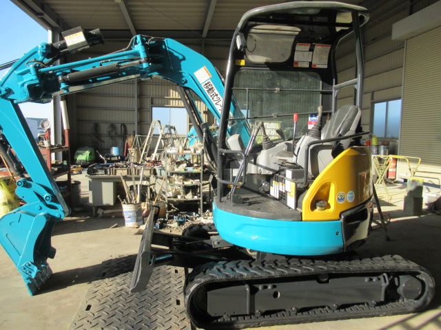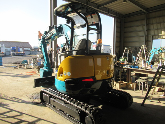 (分解・整備・点検報告)バケット、アーム、ブーム取付け周りピン、ブッシュ、シム調整整備、走行モーター減速機ギアオイル交換、エンジンオイル交換、オイルフィルター交換、燃料フィルター交換、エアークリーナー交換、ベルト類確認、冷却水確認、エンジン音・匂い・かかり具合良好、旋回モーター横ガタ・縦ガタ確認、各シリンダー確認、その他オイル漏れ・燃料漏れ確認、作動油フィルター良好、グロー(余熱)確認済、4WAYマルチレバー作動確認、バッテリー電圧、チャージ確認、セルモーター回転速度確認、モニター・ライト・ホーン等電気系確認、クレーン作動確認、干渉防止確認、オートアイドリング確認、上部ローラー・下部ローラー・フロントアイドラー、ゴム履帯回り良好、油圧ポンプ音・作業機スピード基準値合格、オーバーヒート負荷検査合格、総合検査合格